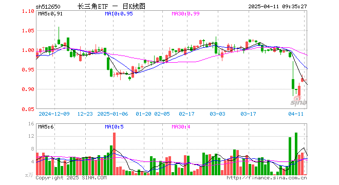 4月11日,长三角ETF(512650)开盘跌0.54%,报0.922元。长三角ETF(512650)重仓股方面,中国太保开盘涨0.99%,东方财富跌0.73%,恒瑞医药跌0.70%,江苏银行跌0.42%,国电南瑞涨2.48%,药明康德跌0.38%,交通银行涨0.55%,沪电股份跌2.02%,海康威视跌0.80%,浦发银行涨0.60%。