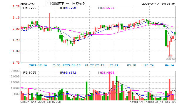 4月14日,上证380ETF(510290)开盘涨1.71%,报1.964元。上证380ETF(510290)重仓股方面,沪农商行开盘跌0.36%,成都银行涨0.12%,渝农商行涨0.33%,宇通客车涨0.19%,亨通光电涨1.45%,广汇能源涨0.54%,生益科技涨2.79%,春秋航空涨0.00%,中国软件跌0.02%,华域汽车涨1.01%。
