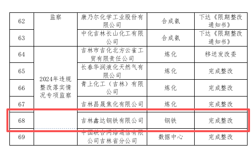 按照工业节能监察相关法规要求,对列入《吉林省工业和信息化厅关于下达2025年工业节能监察任务的通知》(吉工信资源〔2025〕97号)年度监察计划的工业企业开展了专项节能监察。现将节能监察结果予以公示,如有异议,请在公示期内,反馈至吉林省工业和信息化厅资源节约与综合利用处。