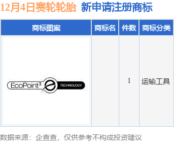 今年以来赛轮集团股份有限公司新申请注册商标19件,截止目前公司共持有注册商标333件,另有85件商标尚在注册申请中。