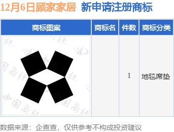 今年以来顾家家居股份有限公司新申请注册商标22件,截止目前公司共持有注册商标1497件,另有102件商标尚在注册申请中。