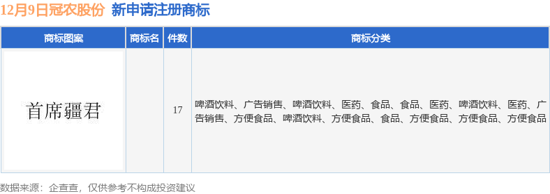 今年以来新疆冠农股份有限公司新申请注册商标73件,截止目前公司共持有注册商标320件,另有125件商标尚在注册申请中。