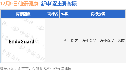 今年以来仙乐健康科技股份有限公司新申请注册商标106件,截止目前公司共持有注册商标2427件,另有242件商标尚在注册申请中。