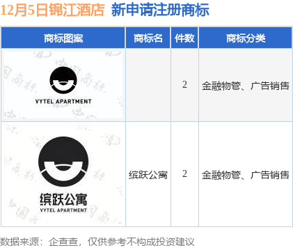 今年以来上海锦江国际酒店股份有限公司新申请注册商标11件,截止目前公司共持有注册商标170件,另有11件商标尚在注册申请中。