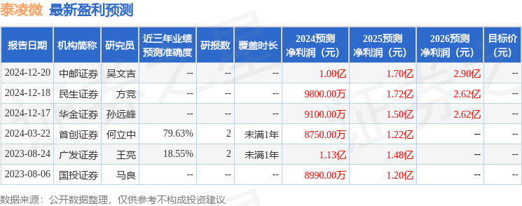 以下是详细的盈利预测信息: