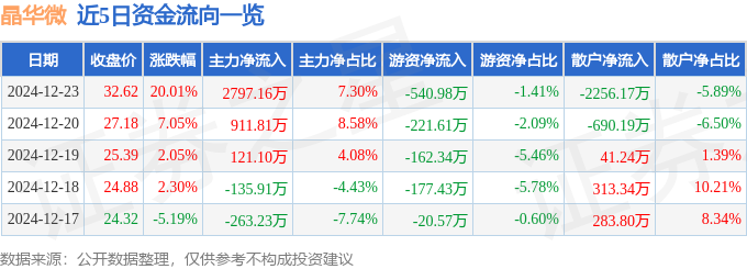 12月23日的资金流向数据方面,主力资金净流入2797.16万元,占总成交额7.3%,游资资金净流出540.98万元,占总成交额1.41%,散户资金净流出2256.17万元,占总成交额5.89%。