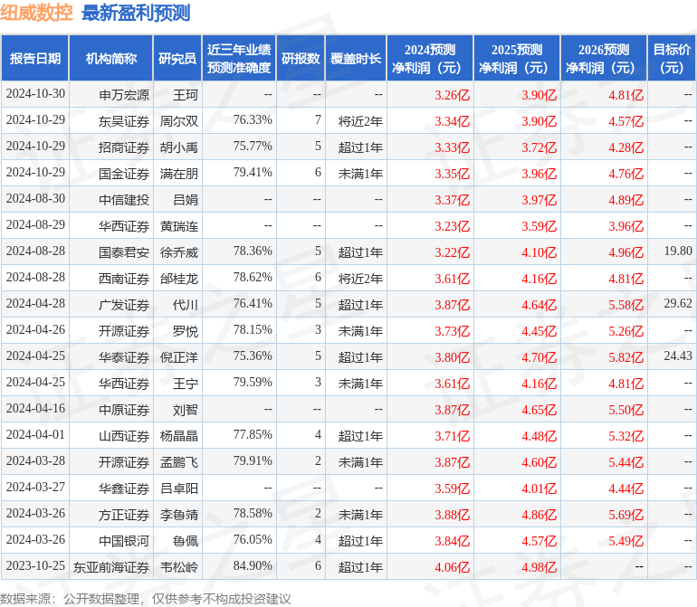 以下是详细的盈利预测信息: