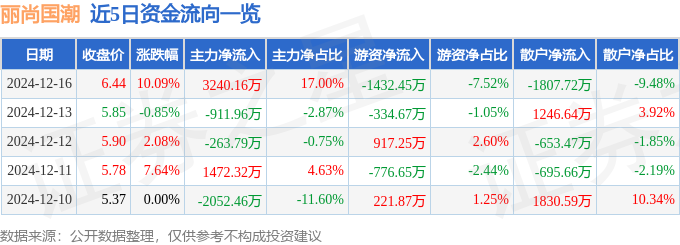 12月16日的资金流向数据方面,主力资金净流入3240.16万元,占总成交额17.0%,游资资金净流出1432.45万元,占总成交额7.52%,散户资金净流出1807.72万元,占总成交额9.48%。