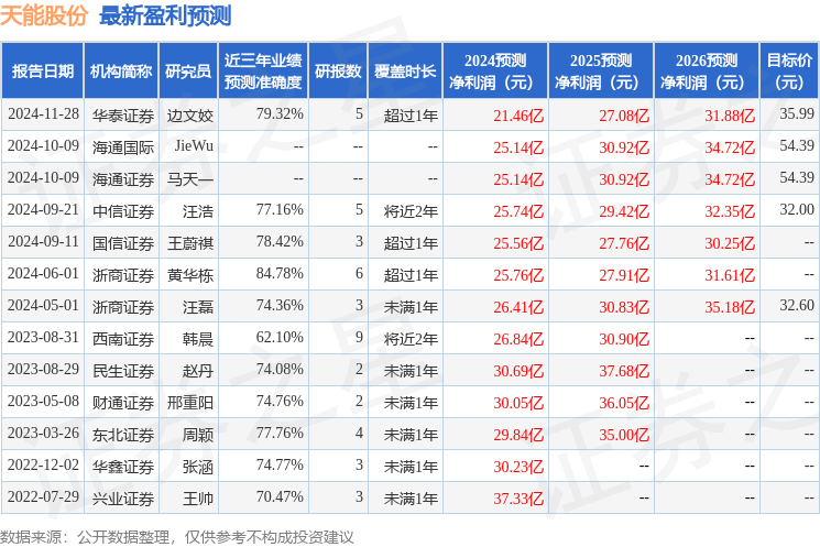 以下是详细的盈利预测信息: