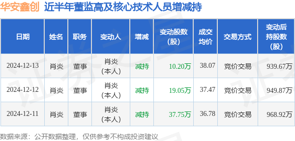 华安鑫创近半年内的董监高及核心技术人员增减持详情如下: