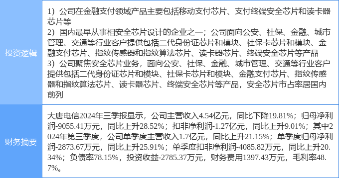 该股为国产芯片,半导体,移动支付概念热股,当日国产芯片概念上涨3.12%,半导体概念上涨2.94%,移动支付概念上涨2.62%。