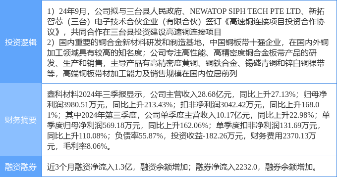该股为铜缆高速连接器,有色 · 铜,有色金属概念热股,当日铜缆高速连接器概念上涨3.96%,有色 · 铜概念上涨0.47%。