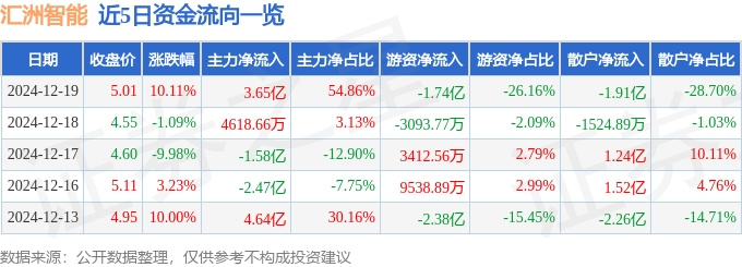 12月19日的资金流向数据方面,主力资金净流入3.65亿元,占总成交额54.86%,游资资金净流出1.74亿元,占总成交额26.16%,散户资金净流出1.91亿元,占总成交额28.7%。