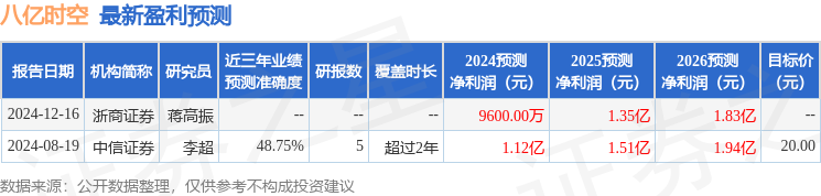 八亿时空2024年三季报显示,公司主营收入5.48亿元,同比下降12.35%;归母净利润6163.24万元,同比下降35.52%;扣非净利润5928.56万元,同比下降27.25%;其中2024年第三季度,公司单季度主营收入1.73亿元,同比下降20.72%;单季度归母净利润1191.74万元,同比下降71.54%;单季度扣非净利润1236.04万元,同比下降65.98%;负债率23.62%,投资收益201.06万元,财务费用19.84万元,毛利率41.41%。