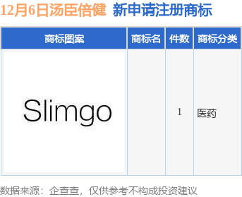 今年以来汤臣倍健股份有限公司新申请注册商标139件,截止目前公司共持有注册商标7918件,另有241件商标尚在注册申请中。