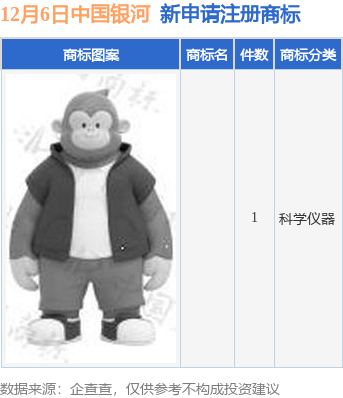 今年以来中国银河证券股份有限公司新申请注册商标20件,截止目前公司共持有注册商标122件,另有20件商标尚在注册申请中。