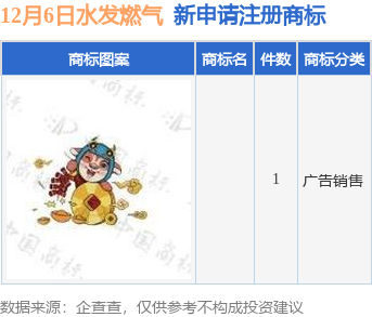 今年以来水发派思燃气股份有限公司新申请注册商标7件,截止目前公司共持有注册商标55件,另有7件商标尚在注册申请中。