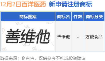 今年以来青岛百洋医药股份有限公司新申请注册商标88件,截止目前公司共持有注册商标437件,另有101件商标尚在注册申请中。