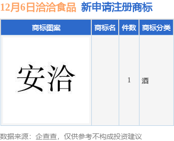 今年以来洽洽食品股份有限公司新申请注册商标66件,截止目前公司共持有注册商标2454件,另有193件商标尚在注册申请中。
