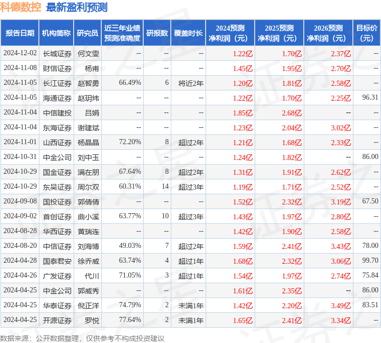 以下是详细的盈利预测信息: