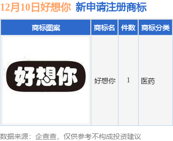 今年以来好想你健康食品股份有限公司新申请注册商标66件,截止目前公司共持有注册商标3239件,另有180件商标尚在注册申请中。