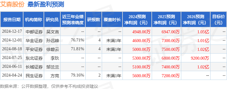 以下是详细的盈利预测信息: