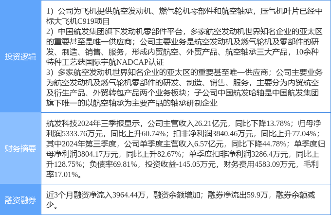 该股为大飞机,通用航空,军工概念热股,当日大飞机概念上涨2.41%,通用航空概念上涨2.34%,军工概念上涨1.48%。