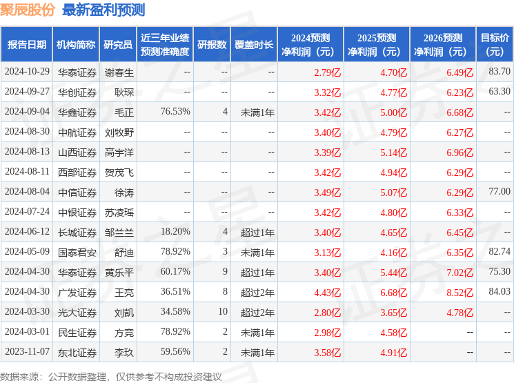 以下是详细的盈利预测信息: