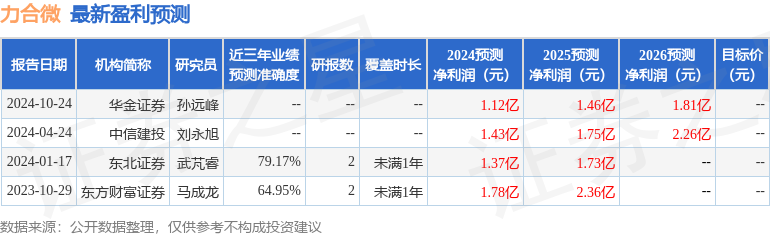 以下是详细的盈利预测信息: