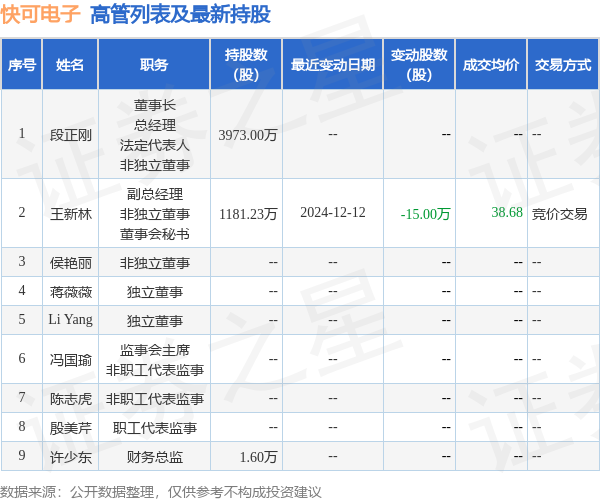 快可电子的高管列表及最新持股情况如下: