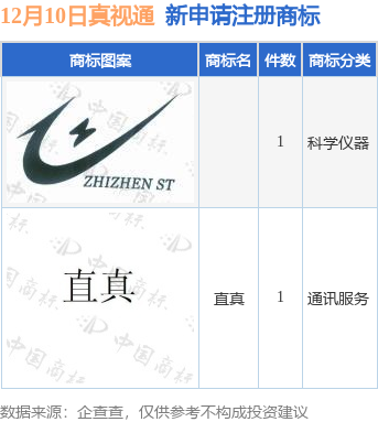 今年以来北京真视通科技股份有限公司新申请注册商标10件,截止目前公司共持有注册商标178件,另有10件商标尚在注册申请中。
