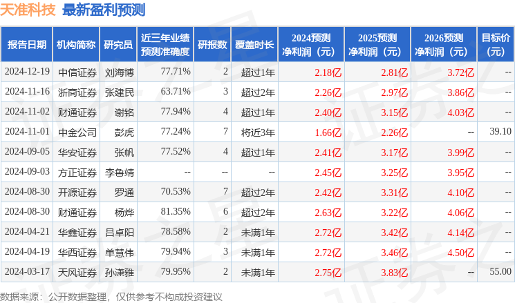 以下是详细的盈利预测信息: