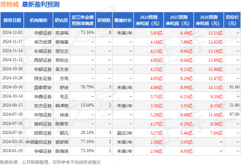 以下是详细的盈利预测信息: