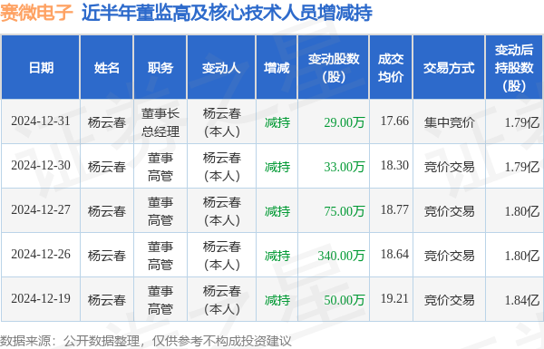 赛微电子近半年内的董监高及核心技术人员增减持详情如下: