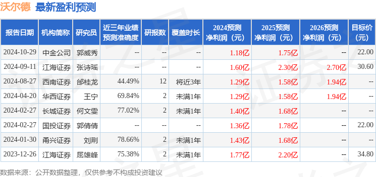 以下是详细的盈利预测信息: