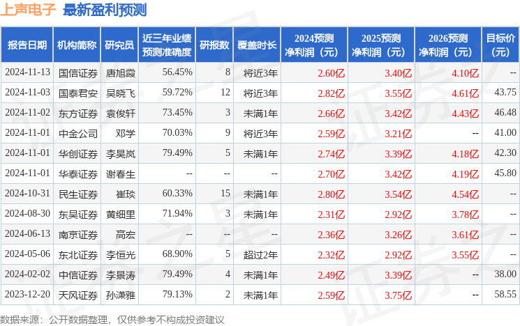 上声电子2024年三季报显示,公司主营收入19.94亿元,同比上升25.16%;归母净利润1.9亿元,同比上升76.86%;扣非净利润1.48亿元,同比上升38.01%;其中2024年第三季度,公司单季度主营收入7.56亿元,同比上升20.09%;单季度归母净利润7806.38万元,同比上升116.88%;单季度扣非净利润5881.83万元,同比上升70.77%;负债率53.73%,投资收益53.29万元,财务费用2533.88万元,毛利率26.31%。