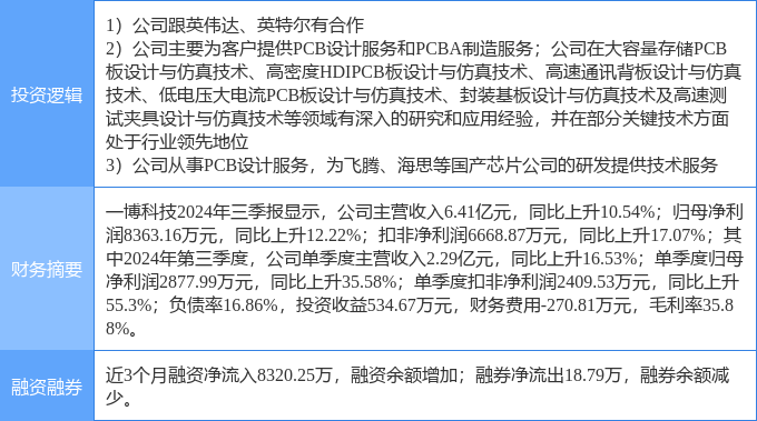 该股为PCB板,英伟达概念,华为海思概念热股,当日PCB板概念上涨4.51%,英伟达概念概念上涨1.6%,华为海思概念上涨1.46%。