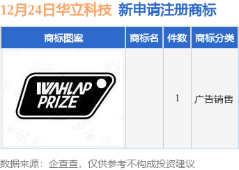 今年以来广州华立科技股份有限公司新申请注册商标0件,截止目前公司共持有注册商标350件,另有72件商标尚在注册申请中。