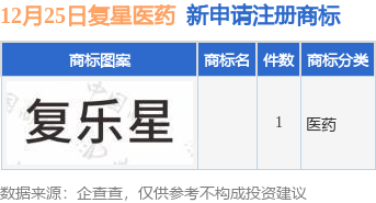 今年以来上海复星医药(集团)股份有限公司新申请注册商标0件,截止目前公司共持有注册商标280件,另有21件商标尚在注册申请中。