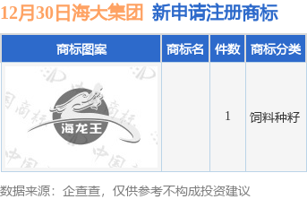 今年以来广东海大集团股份有限公司新申请注册商标0件,截止目前公司共持有注册商标915件,另有227件商标尚在注册申请中。
