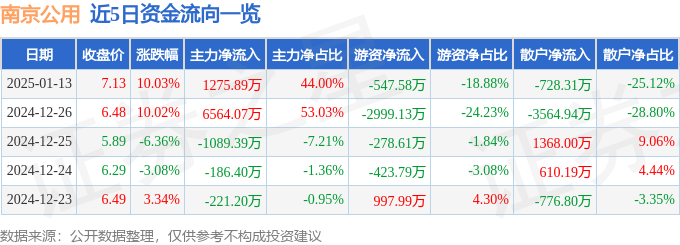 1月13日的资金流向数据方面,主力资金净流入1275.89万元,占总成交额44.0%,游资资金净流出547.58万元,占总成交额18.88%,散户资金净流出728.31万元,占总成交额25.12%。