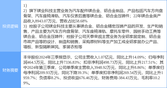 该股为有色金属,有色 · 镁,有色 · 铝概念热股,当日有色金属概念上涨1.18%,有色 · 镁概念上涨1.0%,有色 · 铝概念上涨0.89%。