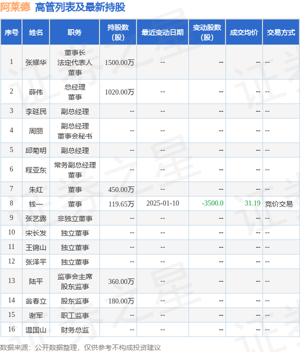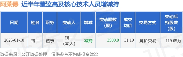 阿莱德近半年内的董监高及核心技术人员增减持详情如下: