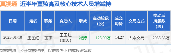 真视通近半年内的董监高及核心技术人员增减持详情如下: