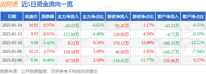 1月14日的资金流向数据方面,主力资金净流出49.22万元,占总成交额0.62%,游资资金净流入92.45万元,占总成交额1.17%,散户资金净流出43.23万元,占总成交额0.55%。