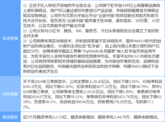 该股为小红书概念股,web3.0,元宇宙概念热股,当日小红书概念股概念上涨12.36%,web3.0概念上涨8.94%,元宇宙概念上涨6.9%。