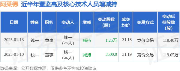 阿莱德近半年内的董监高及核心技术人员增减持详情如下: