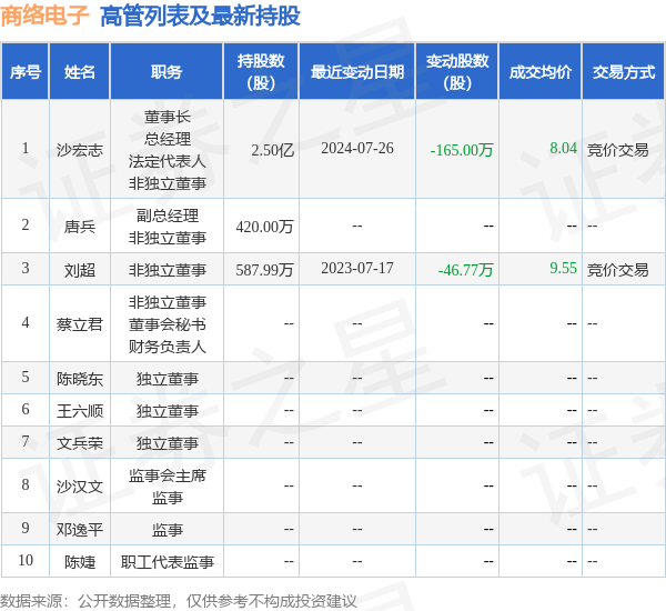 商络电子近半年内的董监高及核心技术人员增减持详情如下: