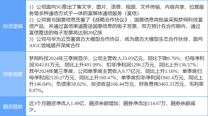 该股为5G消息/RCS,电子发票,华为盘古概念热股,当日5G消息/RCS概念上涨1.81%,电子发票概念上涨1.75%,华为盘古概念上涨1.65%。