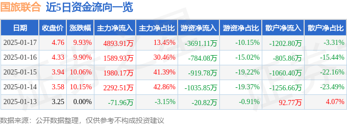 1月17日的资金流向数据方面,主力资金净流入4893.91万元,占总成交额13.45%,游资资金净流出3691.11万元,占总成交额10.15%,散户资金净流出1202.8万元,占总成交额3.31%。
